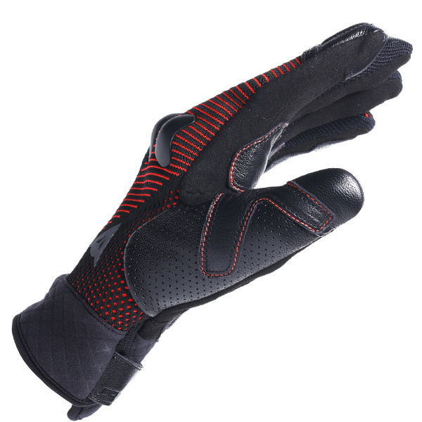 Fabric motorcycle gloves with sheepskin reinforcements and Ergo-Tek knuckles. Equipped with Smart Touch system.